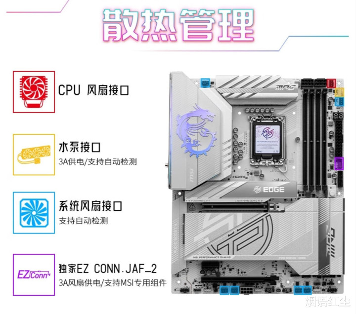 微星MPG Z890 EDGE TI WIFI刀锋钛主板在DIY易用性方面考虑周到,显卡快拆按钮设计让显卡安装和拆卸更加便捷。CPU供电接口位置从主板左上角移动到内存插槽上方,方便安装和走线。M.2接口采用了第2代免工具M.2冰霜铠甲以及第2代免工具M.2卡扣,安装散热片和固态硬盘都无需其他工具。主板还采用了EZ CONN设计,随盒配备线材,可以轻松分离出4pin、5V的ARGB以及USB插针,一条线就满足带屏显的一体式水冷的安装需求。